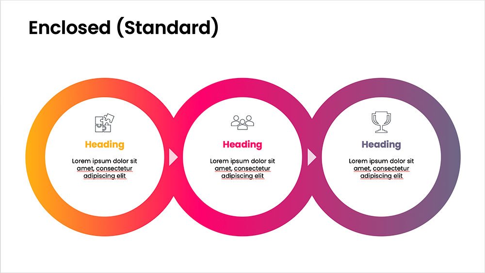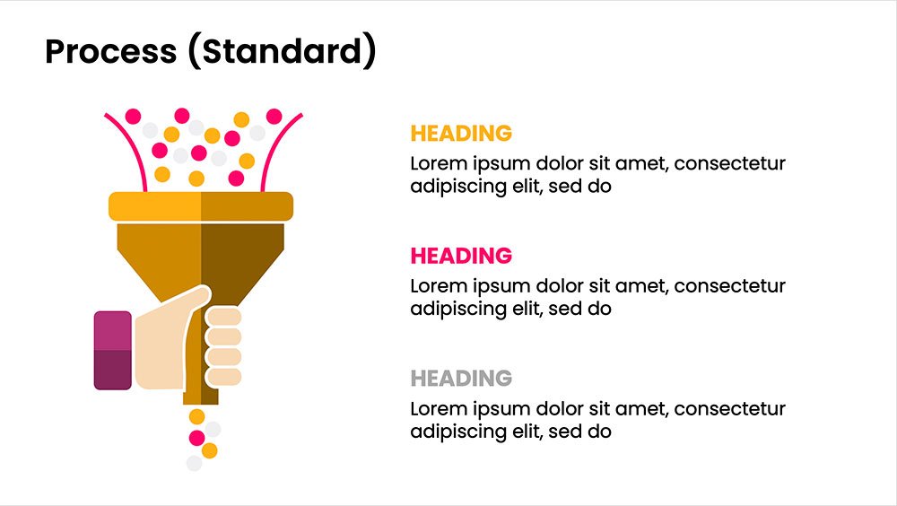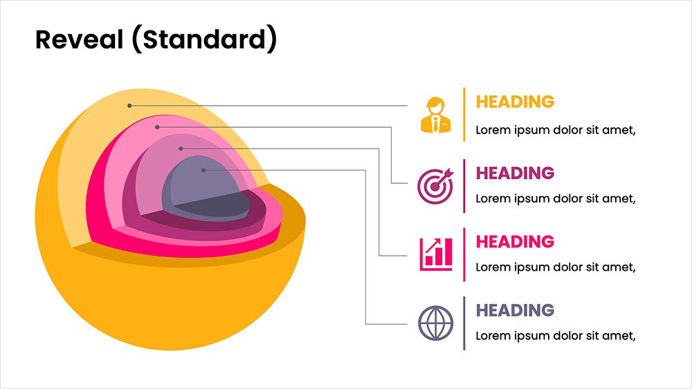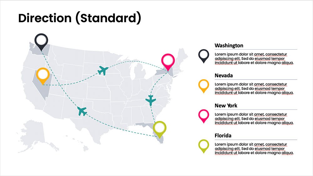 This concept uses images or icons to convey direction, location, reveal processes, or show influence. It provides a visual representation that is easy to understand and adds clarity to directional or procedural content.