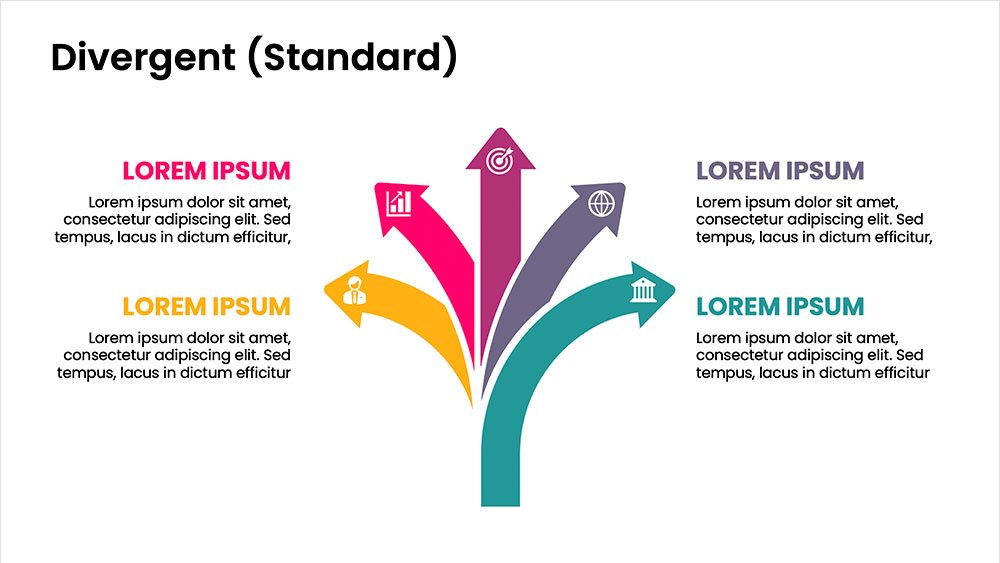 This concept focuses on illustrating the movement or progression of information. It can be represented in various forms, such as linear, circular, divergent/convergent, or multidirectional pathways, to convey how elements progress or connect in a sequence.