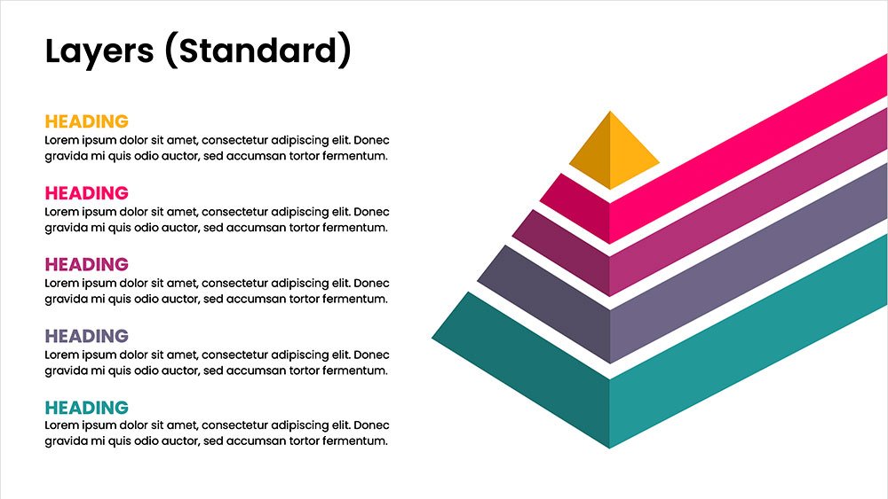 A stacked structure that shows tiered information, with each layer building upon the previous one.