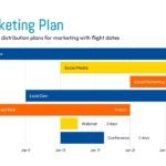 The presentation displays a dynamic Gantt-chart inspired timeline designed for visualizing project schedules and distribution plans with clear start and end durations. Its horizontal bar format with customizable labels and lengths allows for easy plotting of various tasks and their overlaps, making it ideal for marketing campaign planning, project management timelines, event scheduling, or resource allocation over time. This template is exceptionally useful for project managers, marketing strategists, business owners, and team leads who need to present complex schedules and dependencies in an intuitive and easily digestible format.