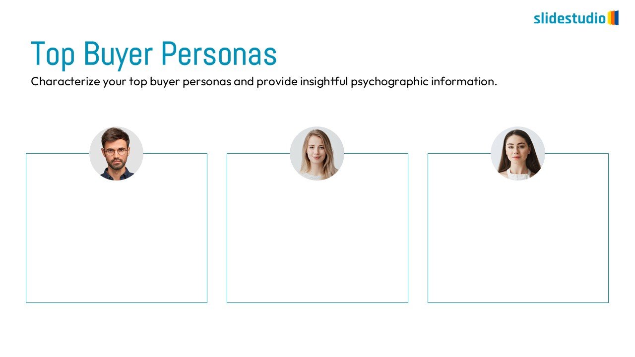 The presentation features a structured and clean layout designed for clear organization of information, incorporating placeholder images for easy visual customization. Its intuitive design facilitates the presentation of complex data in an accessible manner, making it perfect for characterizing buyer personas, team introductions, product feature highlights, or comparing different concepts. This template is especially useful for marketing professionals, sales teams, HR departments, and project managers who need to present detailed information in a well-organized and visually engaging format.