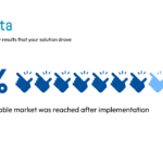 The presentation features a data-driven slide for a case study, designed to highlight a secondary result from a business solution. The slide uses a large number “75%” and ten hand icons pointing towards it to represent that a significant portion of the “total addressable market was reached after implementation”. This format is ideal for a case study to visually emphasize a key performance indicator and the effectiveness of a solution.