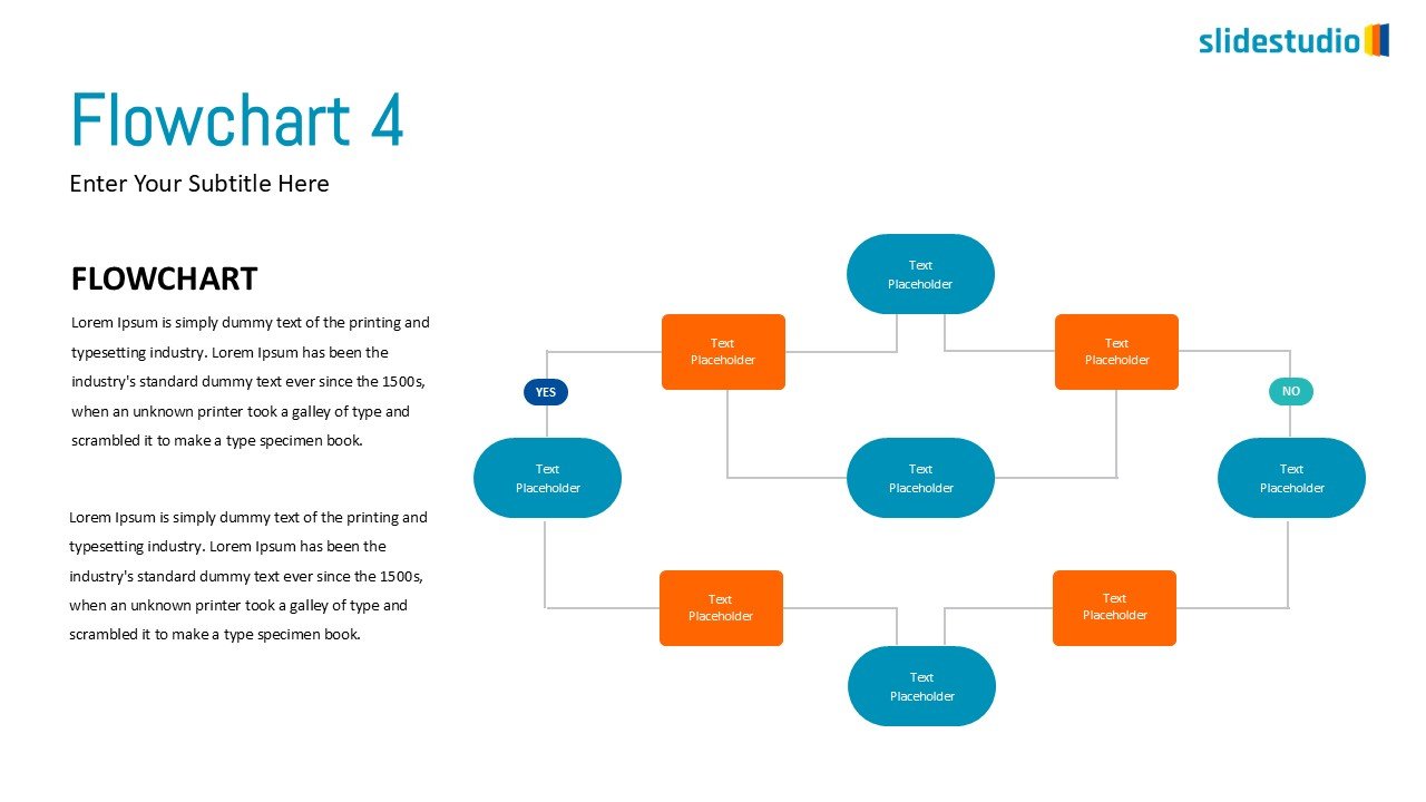 This highly versatile flowchart slide offers a clear and organized visual representation of any complex process, system, or decision-making pathway. It features multiple interconnected shapes, including initial steps, decision points, and subsequent actions, designed to map intricate sequences with precision. With ample text space on the left for detailed descriptions, this template is an indispensable tool for illustrating operational procedures, strategic frameworks, or technical workflows, ensuring your audience gains immediate clarity.