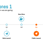 The presentation features a strategic timeline slide, designed to visually outline key company milestones and future plans. The horizontal timeline tracks major events from “Q1 2018” to “Q1 2019,” including fundraising, beta and public product launches, and hiring. This format is highly effective for a pitch deck or business plan to clearly communicate the company’s roadmap and strategic goals to investors or stakeholders.