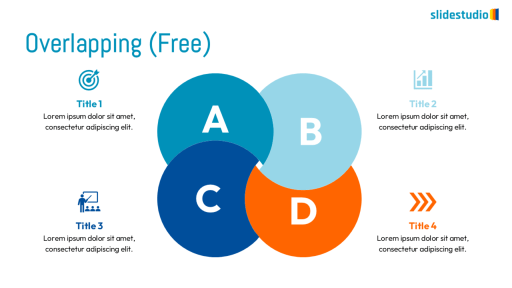 Displays shared areas or intersections, useful for showing commonalities in Venn diagrams.