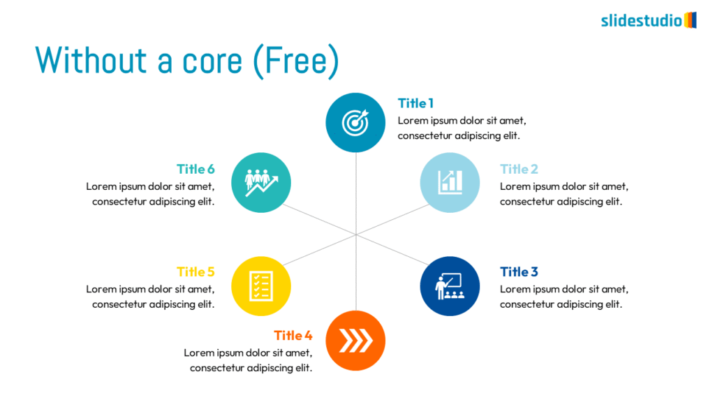 This concept shows elements extending outward from a central point, typically illustrating a spread or influence. It can be depicted with or without a core and represents a central idea that radiates outwards.