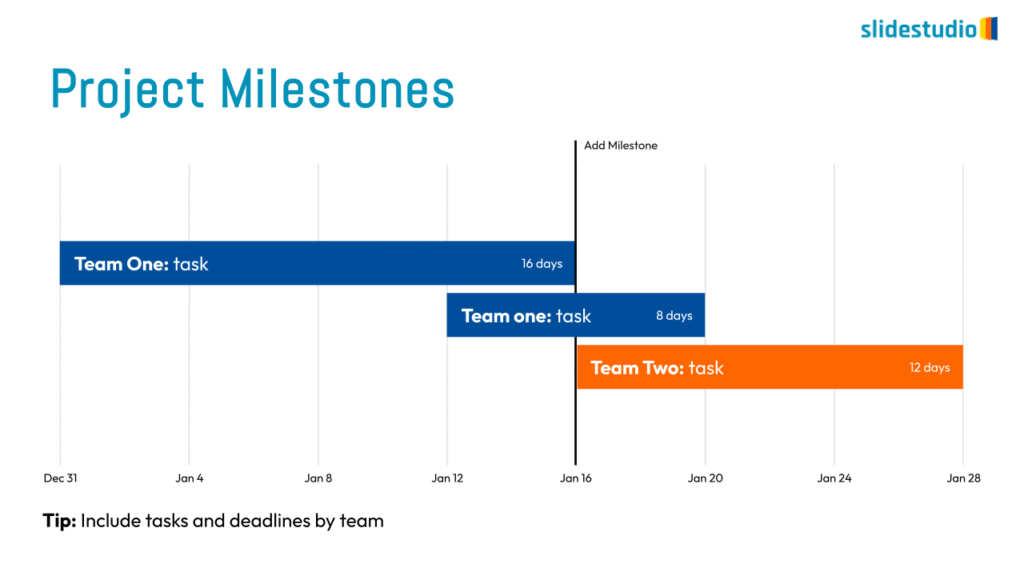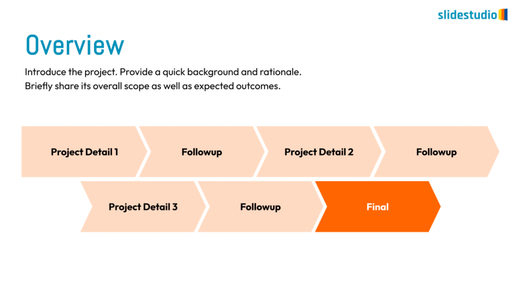Shows stages within a workflow to visualize a continuous sequence of tasks.