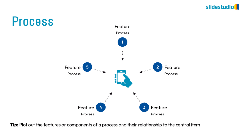 This concept uses images or icons to convey direction, location, reveal processes, or show influence. It provides a visual representation that is easy to understand and adds clarity to directional or procedural content.